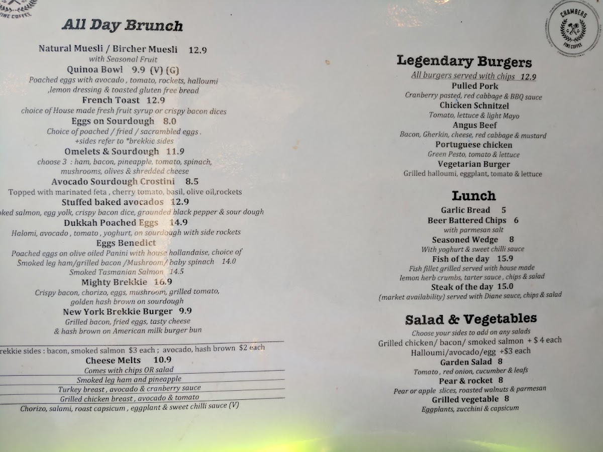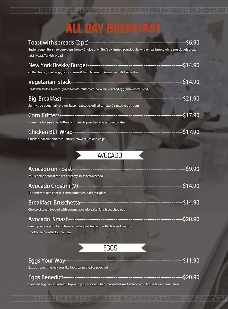 Chambers Coffee @ Parramatta Square Menu